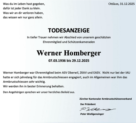 Mit grosser Trauer nehmen wir Abschied von unserem Ehrenmitglied